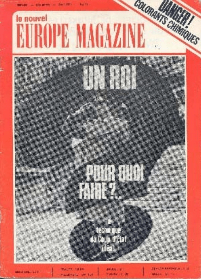 The Cercle des Nations started out with about 80 members, who were generally right-wing, royalist, anti-communist, pro-NATO, pro-European integration and fascist. In April 1970, the Cercle des Nations held a reception in honor of the ruling Greek colonels, who had staged a coup against the government of Panagiotis Kanellopoulos in 1967. By 1971, Vanden Boeynants, with funding from de Bonvoisin, set up Nouvel Europe Magazine (NEM). The magazine was published by CIDEP, a company owned by de Bonvoisin. In May 1971, after Emile Lecerf became editor, the magazine published an articles with the title The technique for an ideal coup d’etat. In the same month, NEM moved to a premises owned by de Bonvoisin. Over the year, a number of NEM-clubs began to be organized where fascist militants could meet each other and plot a coup. In 1972, Vanden Boeynants, de Bonvoisin and Vankerkhoven founded the Centre Politique des Independents et des Cadres Chretiens (CEPIC), a clandestine think tank, which represented a continuation of the MIC and a renewed effort to neutralize the leftist (pro-labour) wing within the PSC. In the same year as the CEPIC’s founding, Vanden Boeynants became the Minister of National Defense, a position he held under Prime Ministers Edmond Leburton and Leo Tindemans through the 1970s. Throughout this time, Baron de Bonvoisin and Nicolas de Kerchove were personal advisors to Vanden Boeynants and helped to run the CEPIC. In 1972, it has been alleged that planning began to destabilize Belgium in order to bring in a stronger government that could more effectively counter “KGB subversion” of labor unions and left-wing political parities.