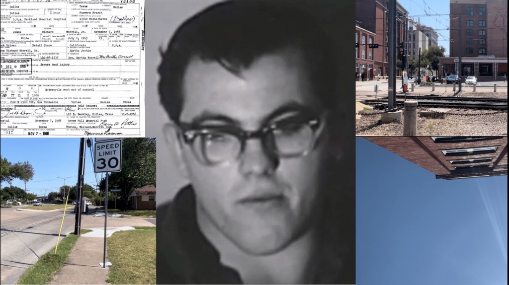What isn’t in doubt is that there was a witness, H.E. Cooper, who as far as I can tell never told investigator J.N. Feinglass that he saw another vehicle chasing their motorcycle. Any details from Feinglass would also be helpful. Reportedly the Dallas Times Herald article contained a photo of the wrecked motorcycle, but I have not been able to obtain it.
