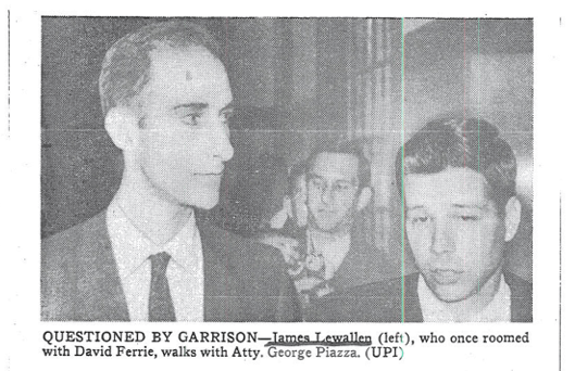 While he left the DA’s office for training to become a pilot, he did maintain his law practice, stating: “Well, with the Delta job I’ll take only the cases that really appeal to me.” At some point, he began to represent James Lewallen, a former roommate of the pilot David Ferrie, who would come up in connection with Garrison’s probe into the JFK assassination beginning in 1967. Ferrie had been questioned by Garrison back in 1963, but he had been let go by the FBI. (3)